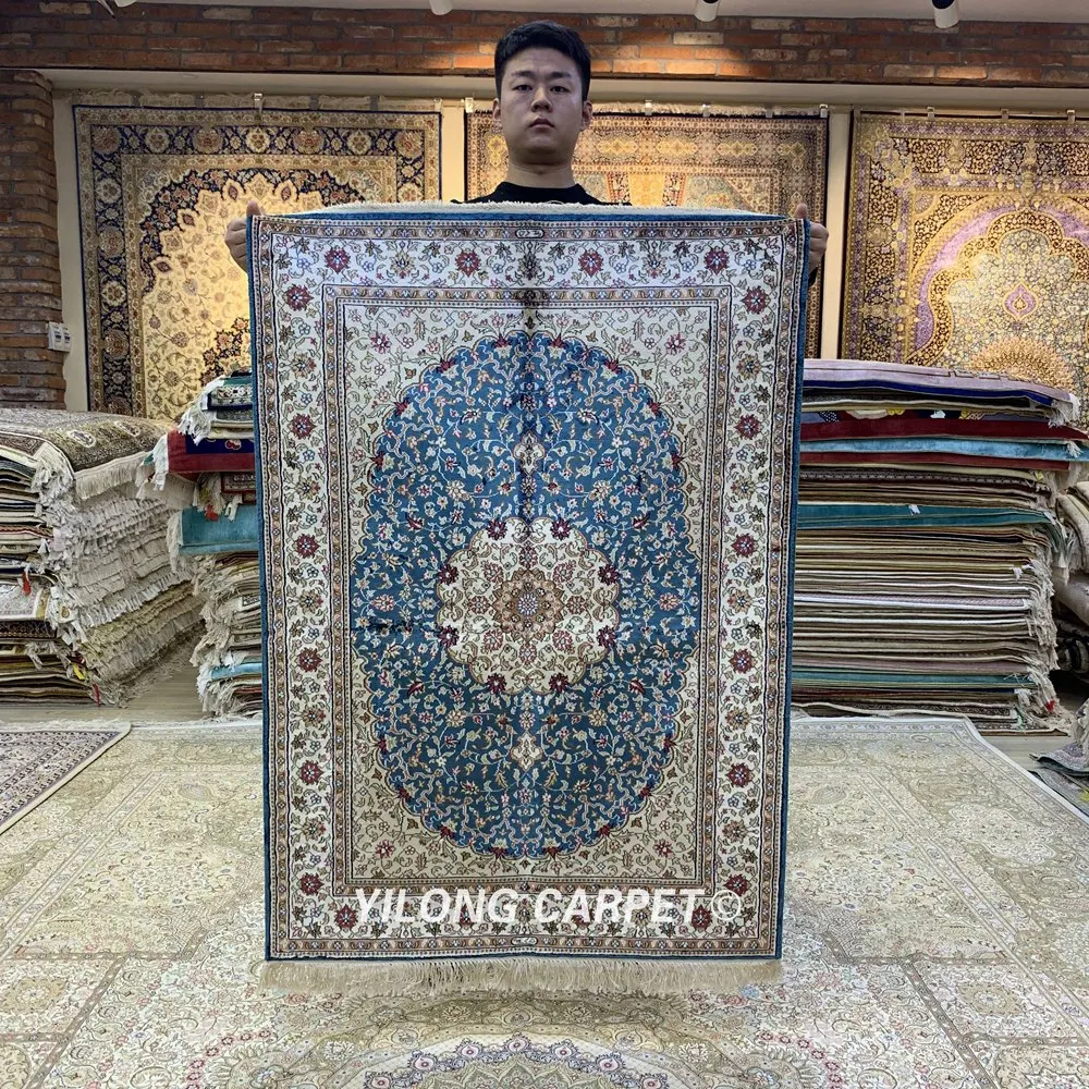 HIGH QUALITY Yilong 2.7'x4' Hand Knotted Persian Blue Carpet Oriental Antique Turkish Rug (HF209B)