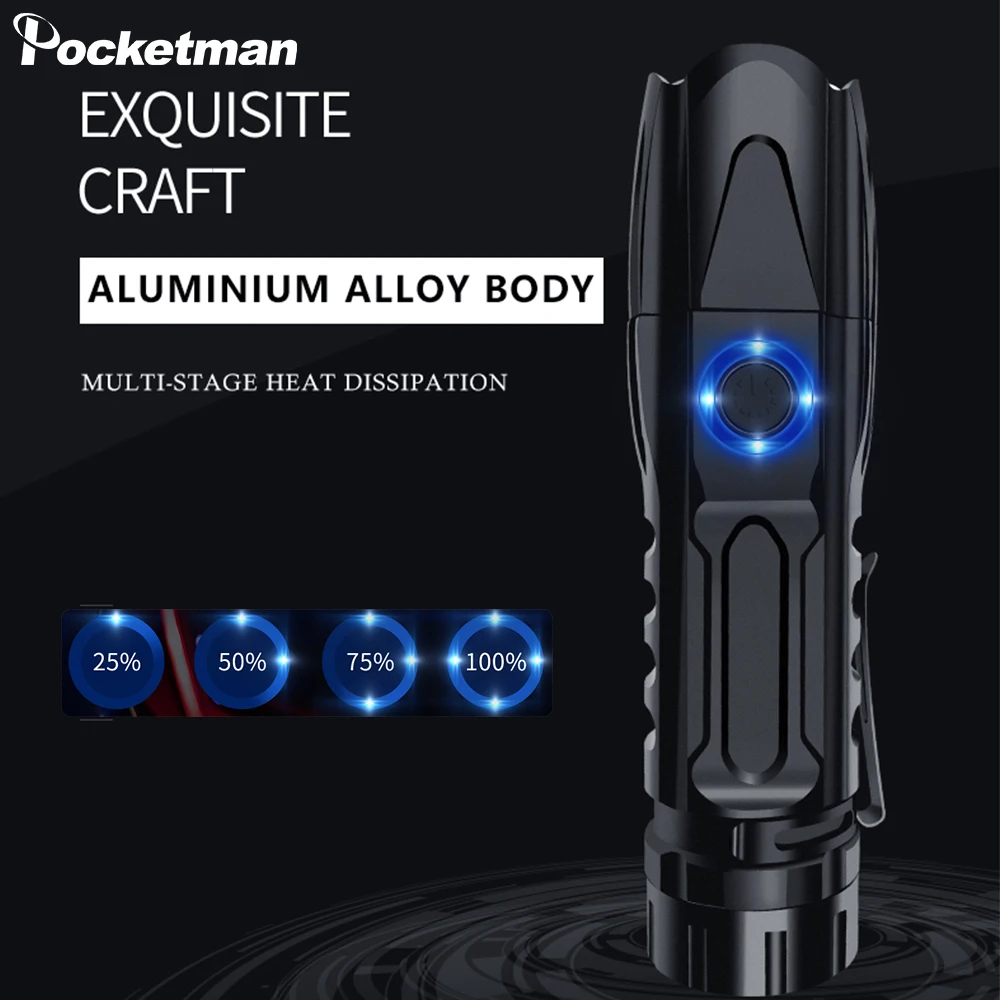Hot Sale Powerful XHP90.2 Xlamp LED Flashlight Tactical Waterproof Torch Smart Chip Control with Bottom Atta