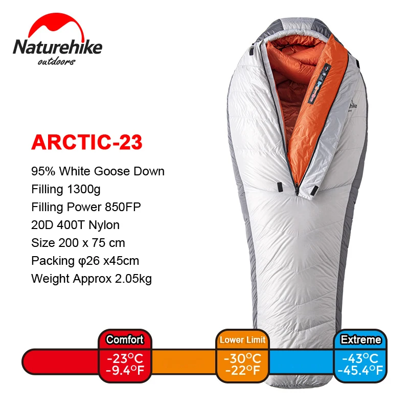 Filling 1300g/1000g 95% Goose down Thermal Winter mummy Hooded Travel Camping Water Resistant Thick