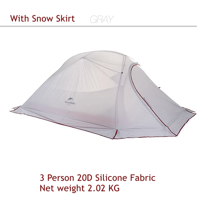 2.02 KG Naturehike Tent 3 Person 20D Silicone Fabric Double Layer Rainproof Outdoor Camping Tent Wi